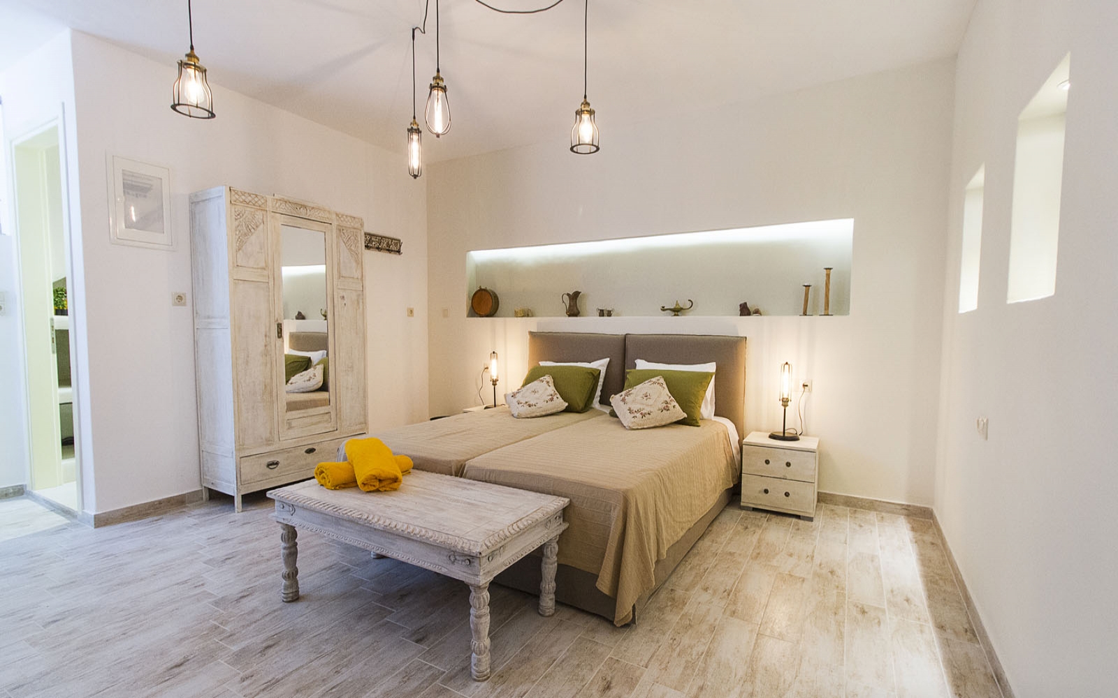 In the ground floor area there is a spacious bedroom area where additional beds may also be placed, this is offering the possibility to accommodate up to 4 guests.